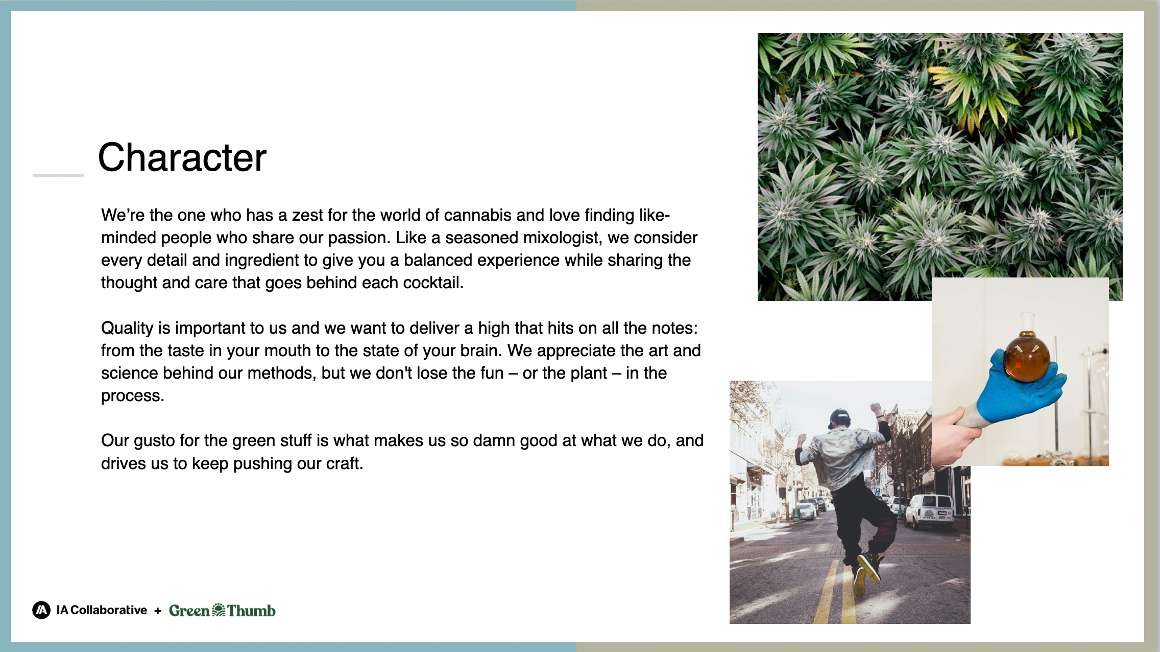 Green Thumb Industries came to us looking for a couple rebranding efforts that extended into an end-to-end project: from brand strategy and position, product packaging, website, and in-store promotions/ merchandise, educational materials, and field activations. I had the honor of leading messaging, positioning, content strategy, and writing while collaborating with my design team to develop a persona and visual and verbal identities.